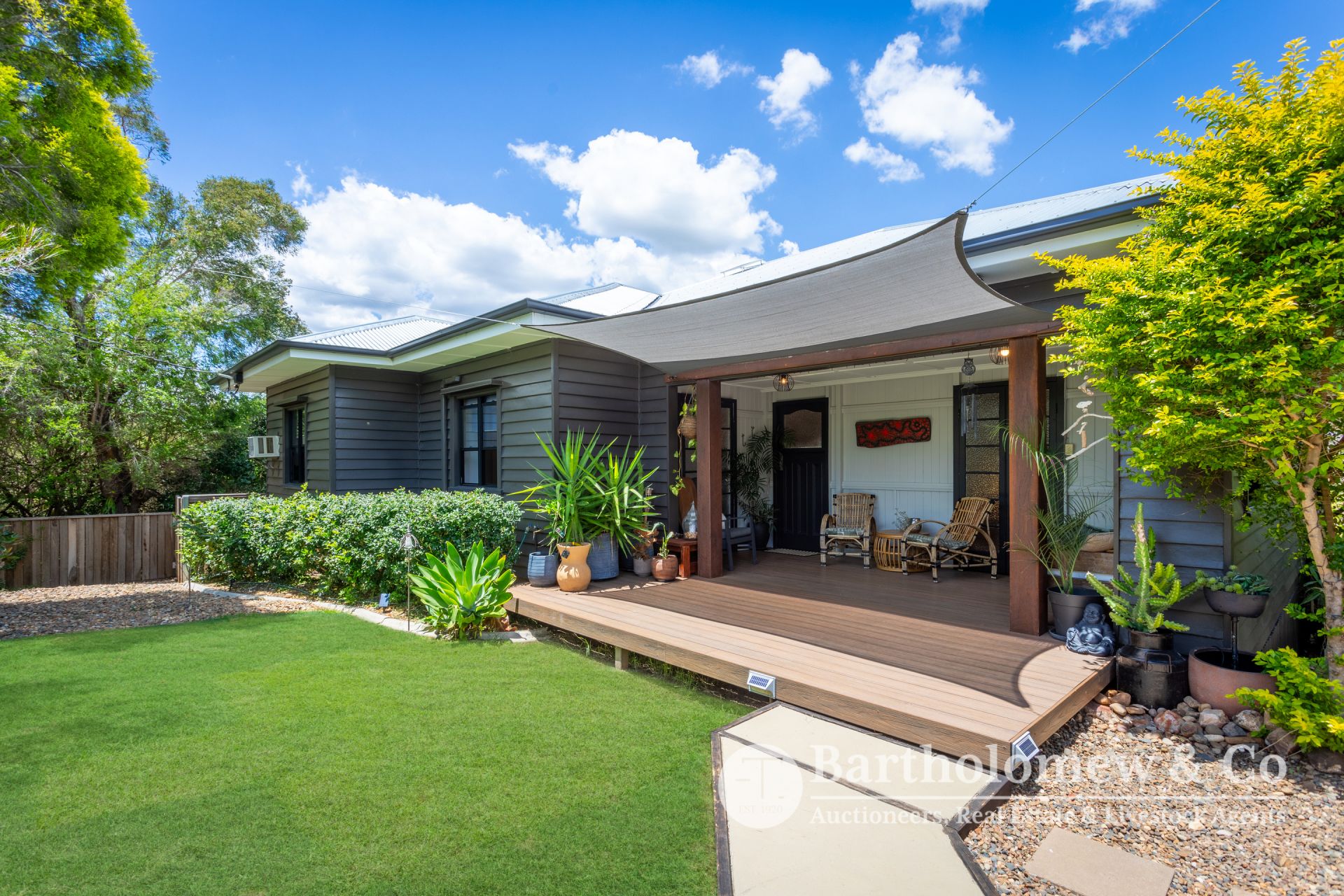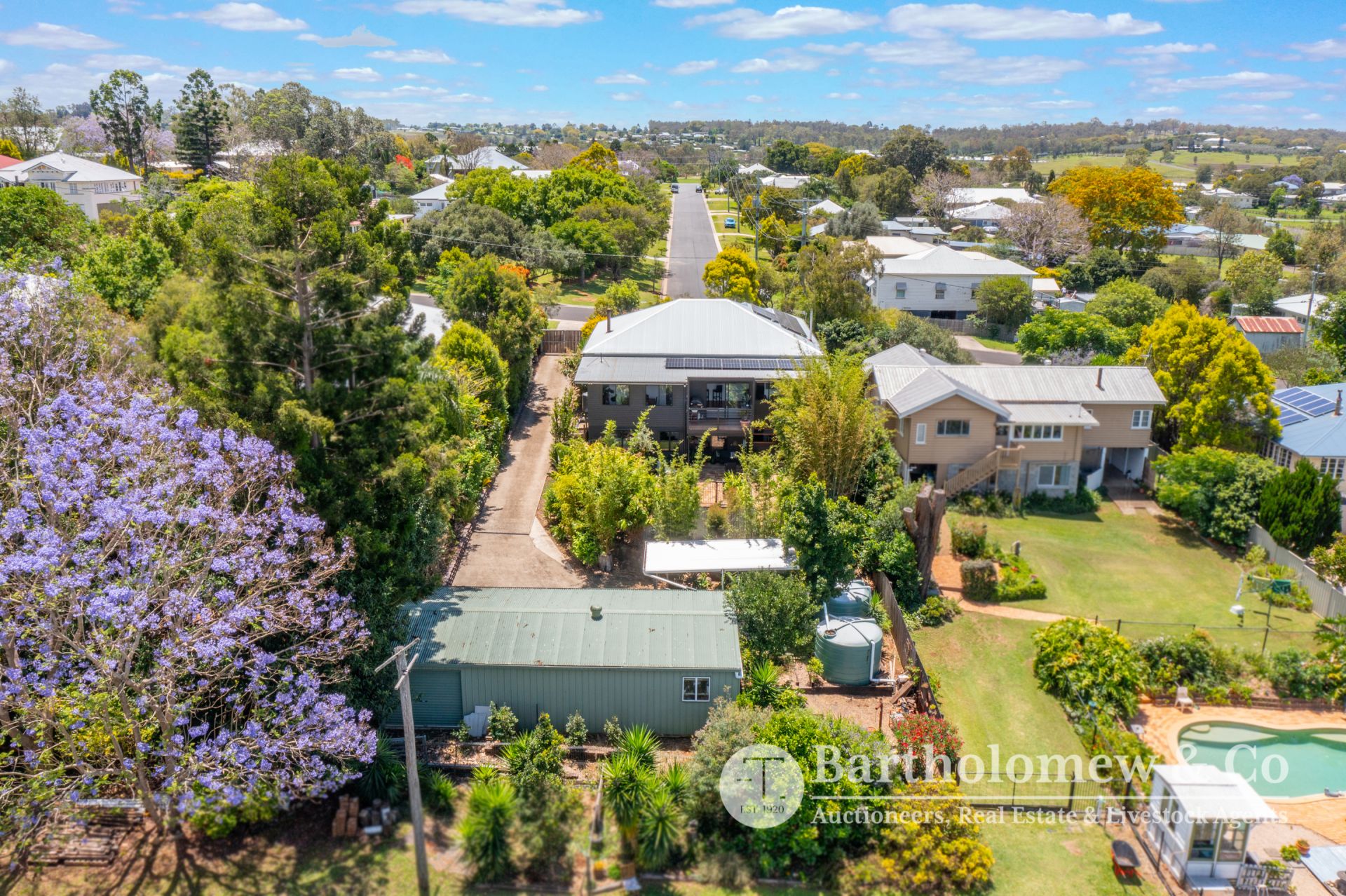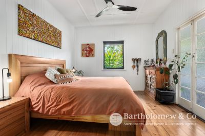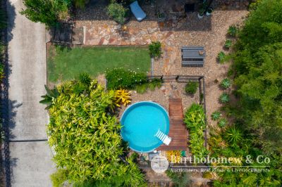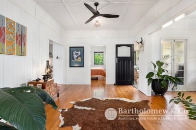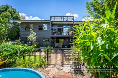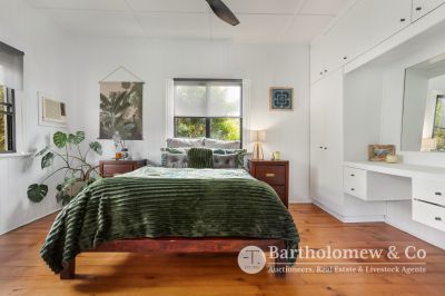 Blue chip Boonah location, impeccable renovation, ultimate privacy, we challenge you to find better! Sitting on a securely fenced 1012m2 block the established trees & gardens create a tranquil setting for the fully renovated home. A Northerly facing front verandah welcomes you and leads into the large open plan living space boasting polished floors and high ceilings. 3 large bedrooms flow from the central living with features including French doors, louvers and built in robe to main. The gourmet kitchen is a chef's dream with stone tops, large gas stove, walk in pantry and all looking out to the lovely Southerly view! A cozy separate lounge room has air-con and wood heater, there is a separate dining with air-con and inviting reading nook/ family room that opens to a private rear verandah. Downstairs you will find a fully self-contained granny flat perfect for extended family, overnight guests or explore the possibilities of Air B n B. Renovated to match the same refined aesthetic it includes 1 bedroom, bathroom, combined living & kitchenette that opens via strut window to a great entertainment space. This leads straight to the inviting plunge pool perfect to cool off on those balmy Boonah afternoons! A long concrete driveway leads to the 4 bay Colourbond shed and freestanding carport. 2 rainwater tanks, charming fire pit area and 6 KW solar system feeding back to the grid complete this outstanding package. With not a thing to do (restumped & reroofed 2021) take advantage of someone else's hard work and enjoy privacy, views and ease of living that 22 Brook St will give to you!