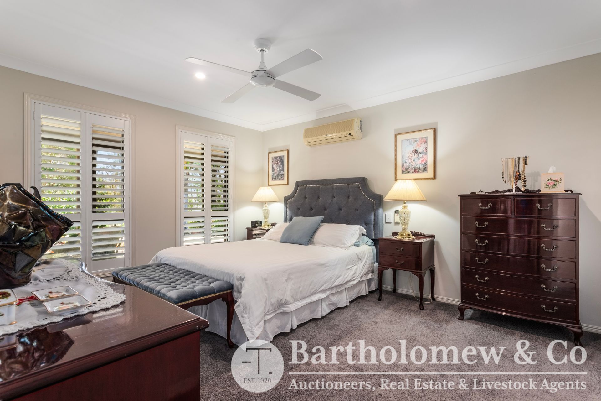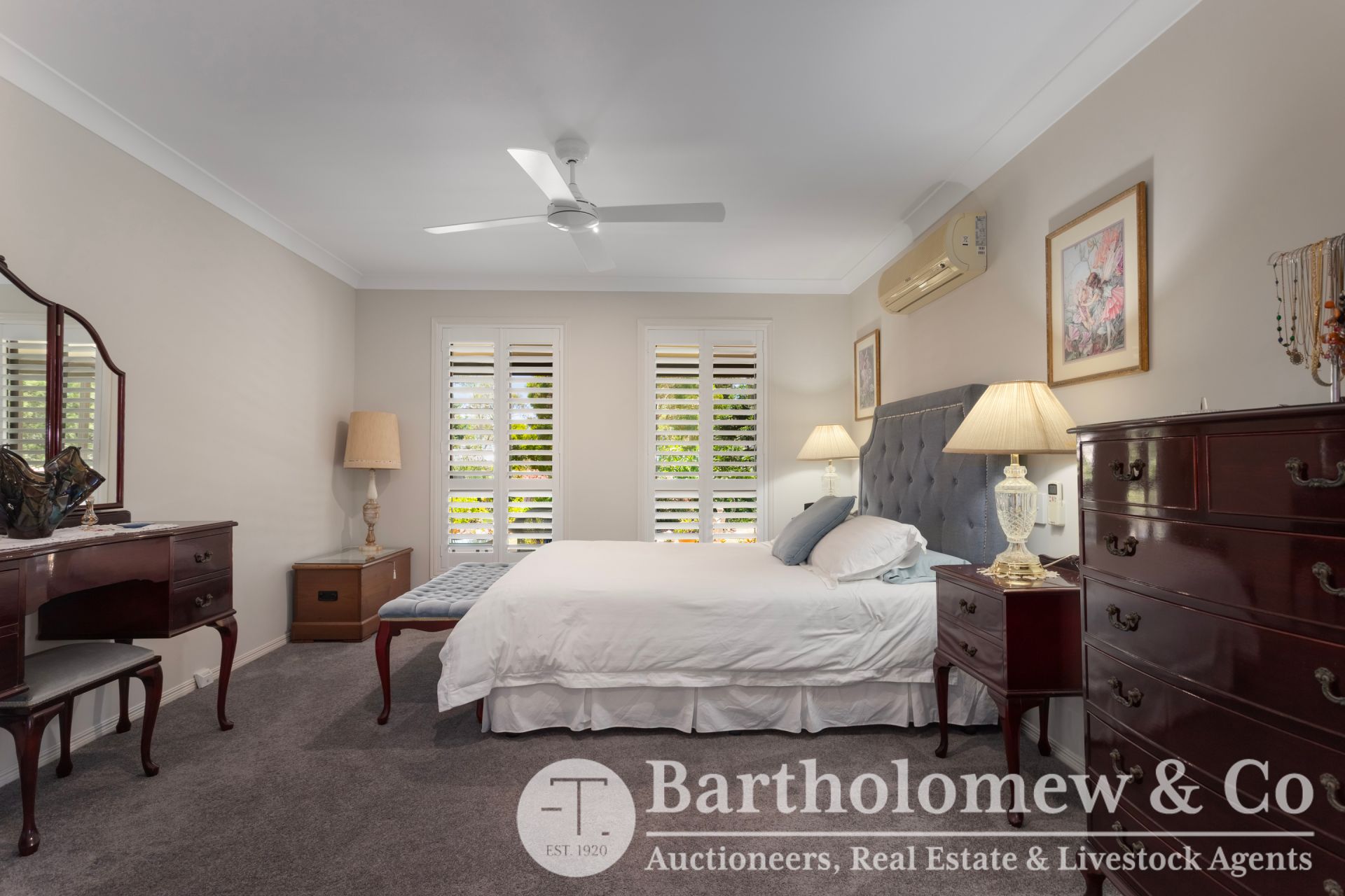 The master bedroom is impressively sized and includes air-conditioning, ceiling fan, walk-in robe and a large ensuite. Two additional carpeted bedrooms feature built-in robes and are serviced by a fully tiled main bathroom complete with both shower and bath. The spacious laundry offers excellent storage and functionality.